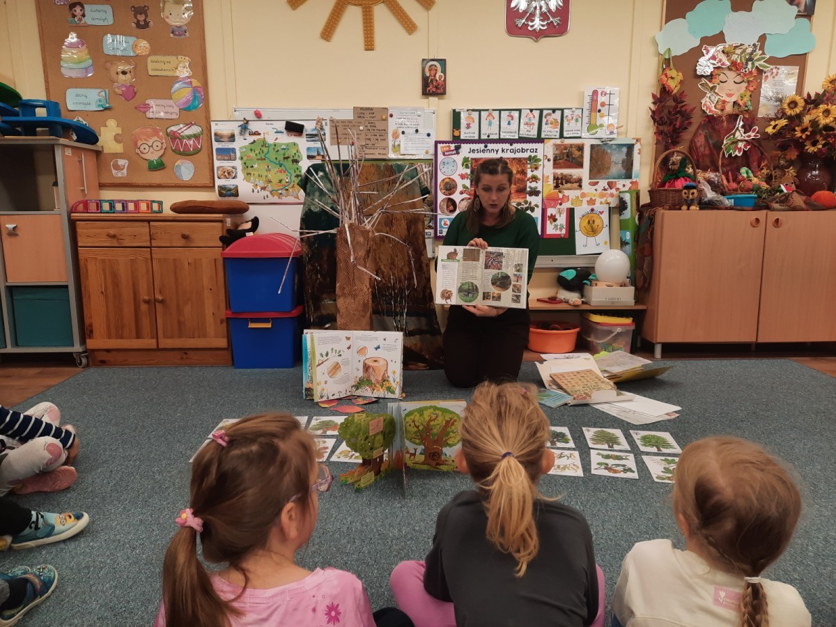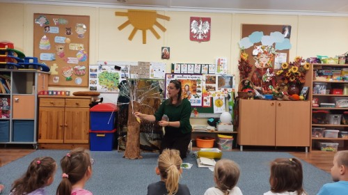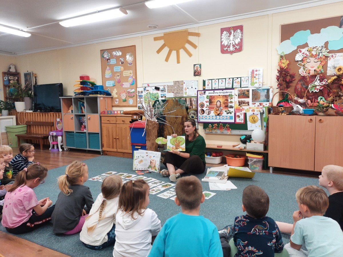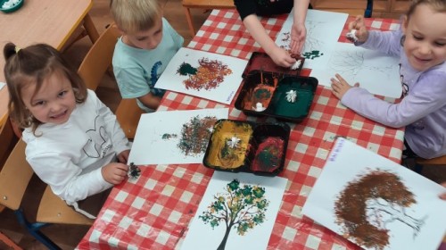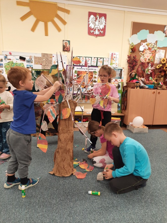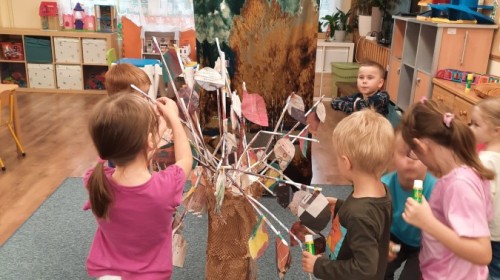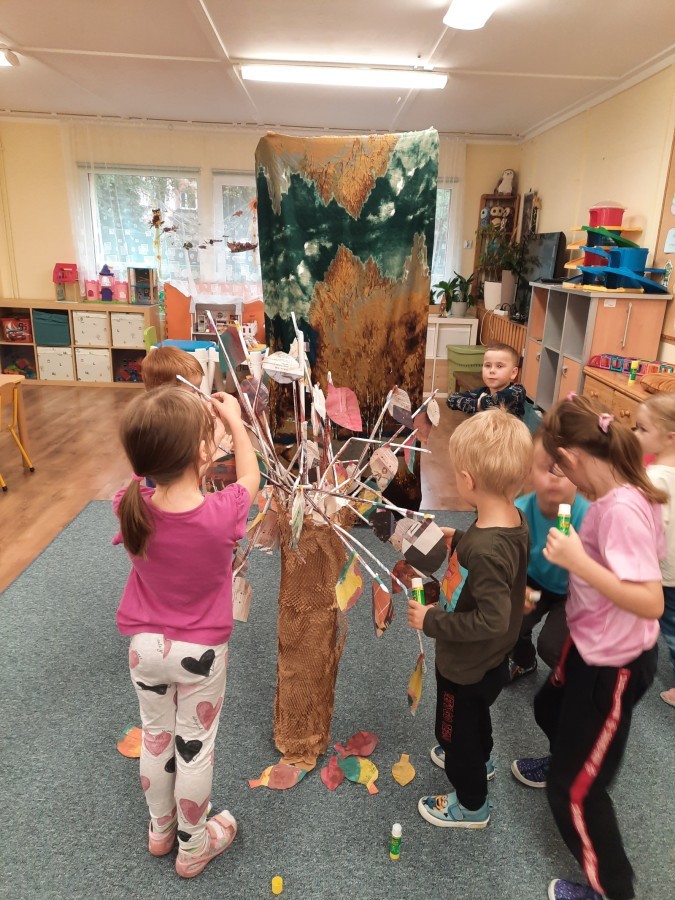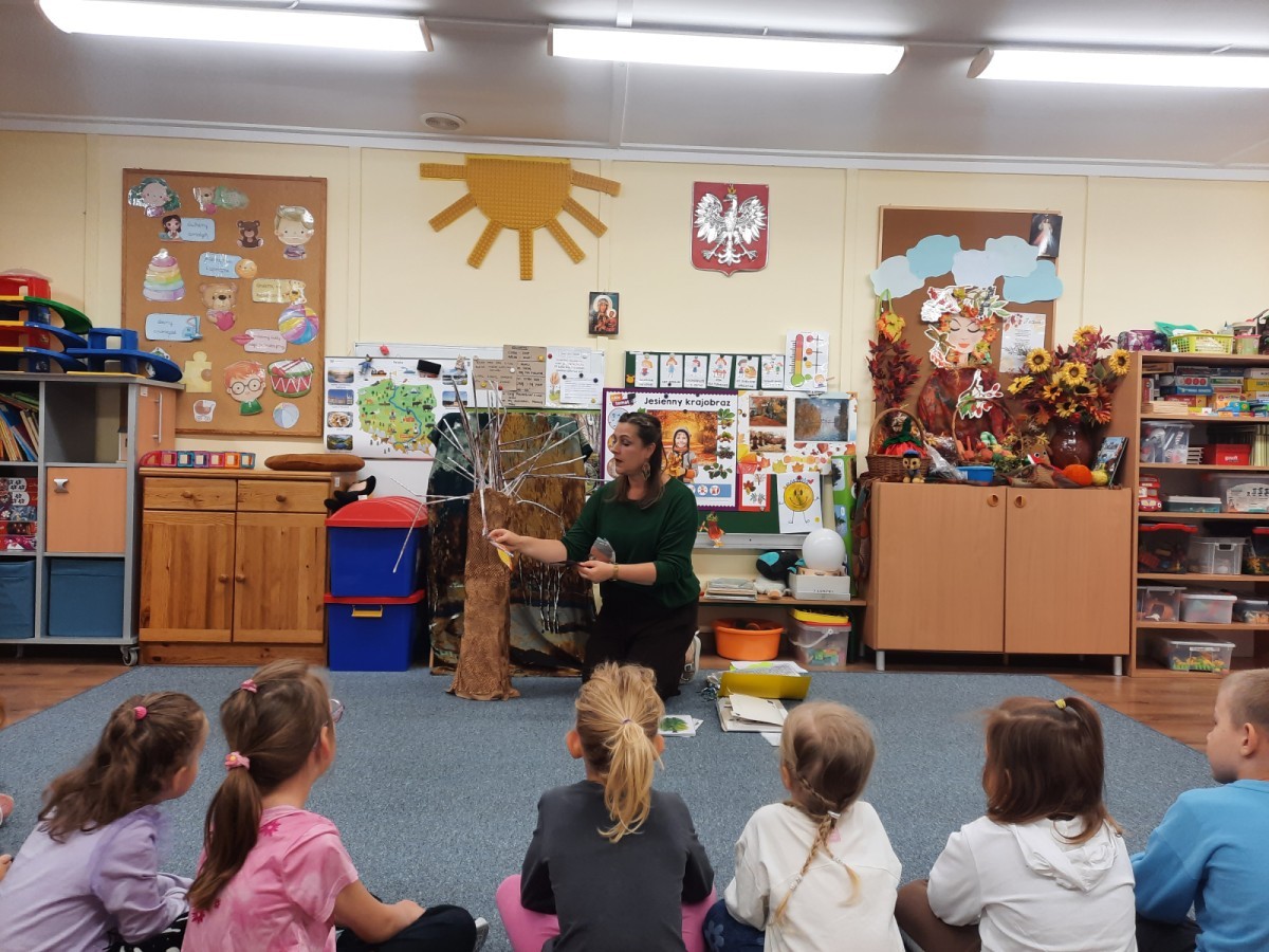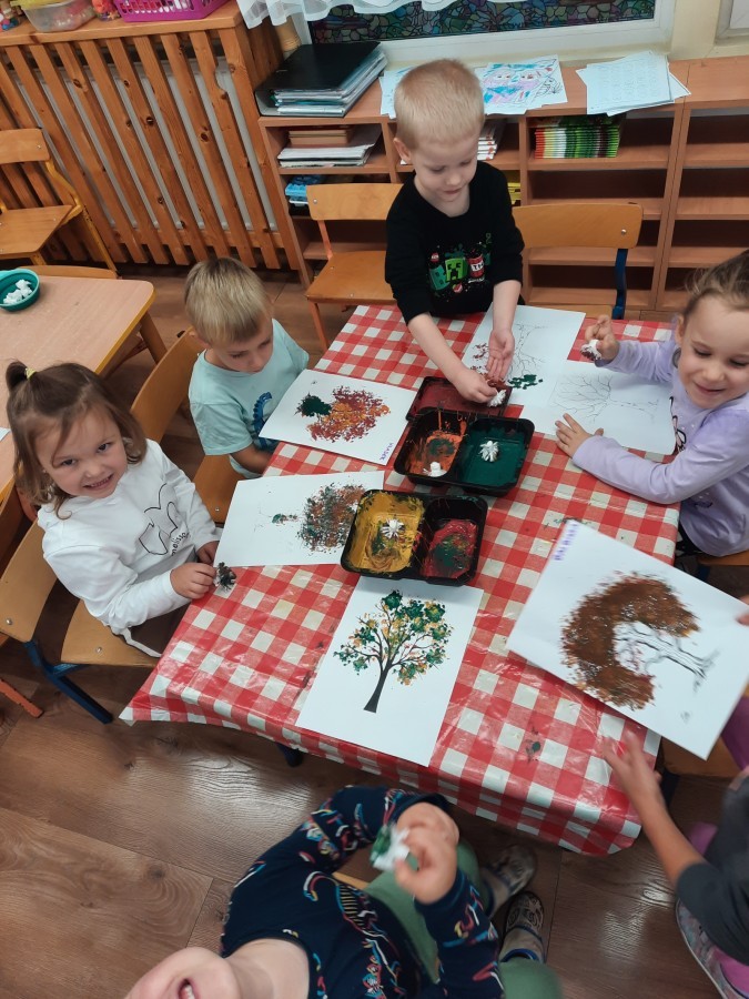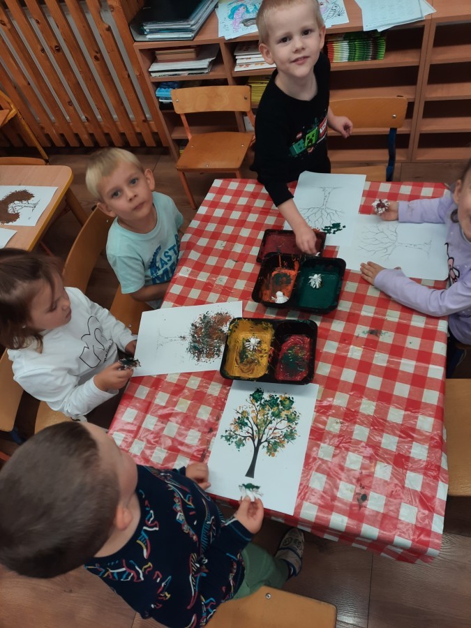 10 Października w naszym przedszkolu obchodziliśmy Dzień Drzewa. Dzieci rozmawiały o znaczeniu drzew dla ludzi i przyrody, poznały budowę drzewa, jego znaczenie dla człowieka, zwierząt i przyrody. Przedszkolaki dowiedziały się również jak wielkie znaczenie mają drzewa dla czystości powietrza, a tym samym dla zdrowia człowieka. Uczestniczyły w zabawach ekologicznych oraz tworzyły piękne prace plastyczne. W czasie zabaw badawczych w ogrodzie oglądały drzewa, dotykały ich kory, liści i gałązek. To był dzień pełen radości, nauki i troski o środowisko.