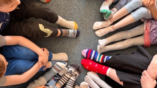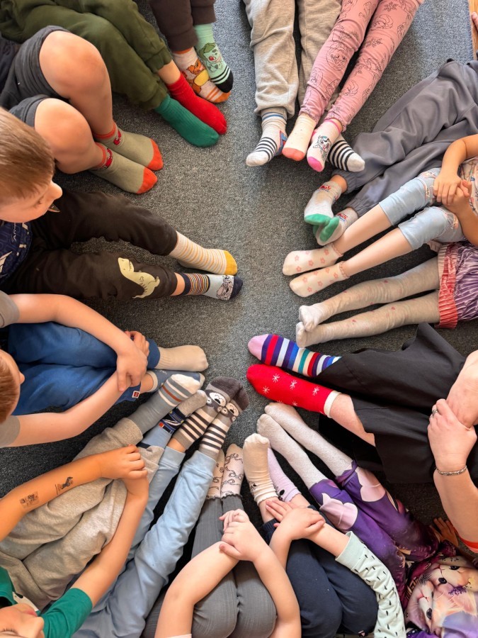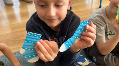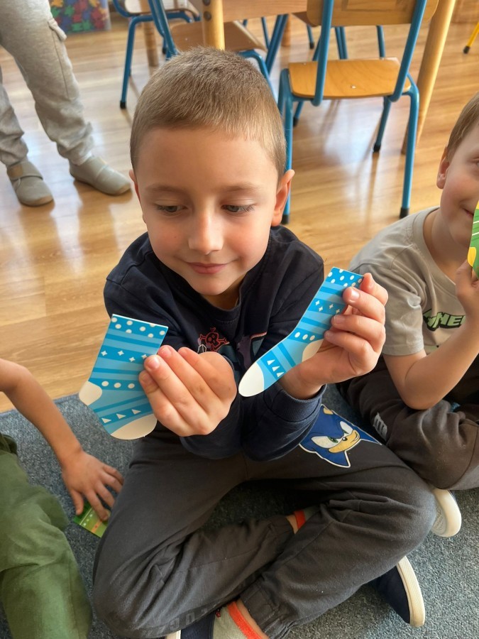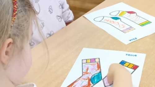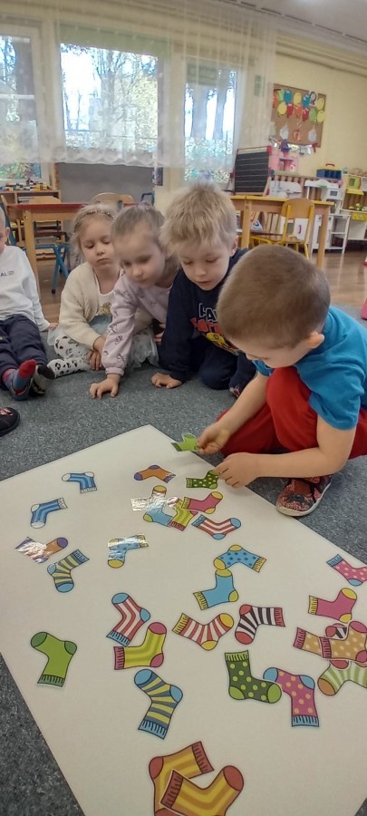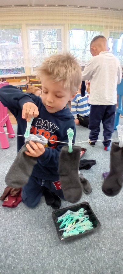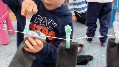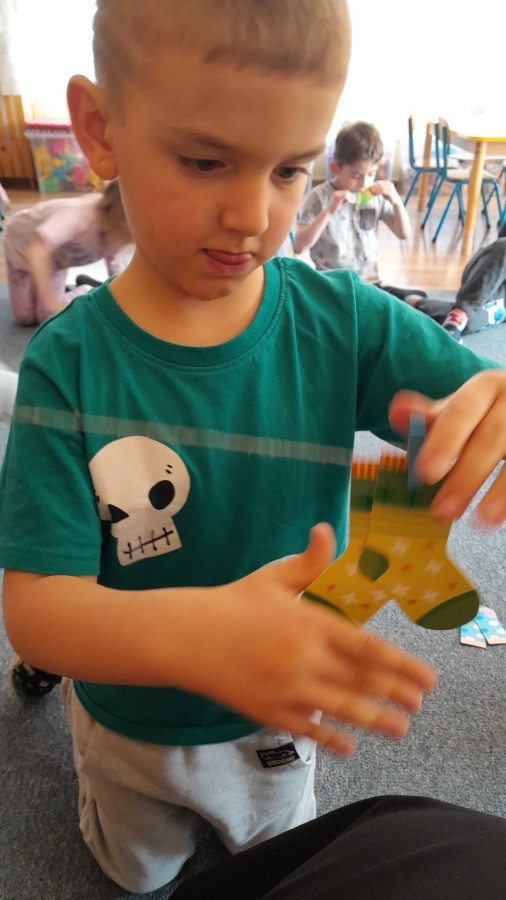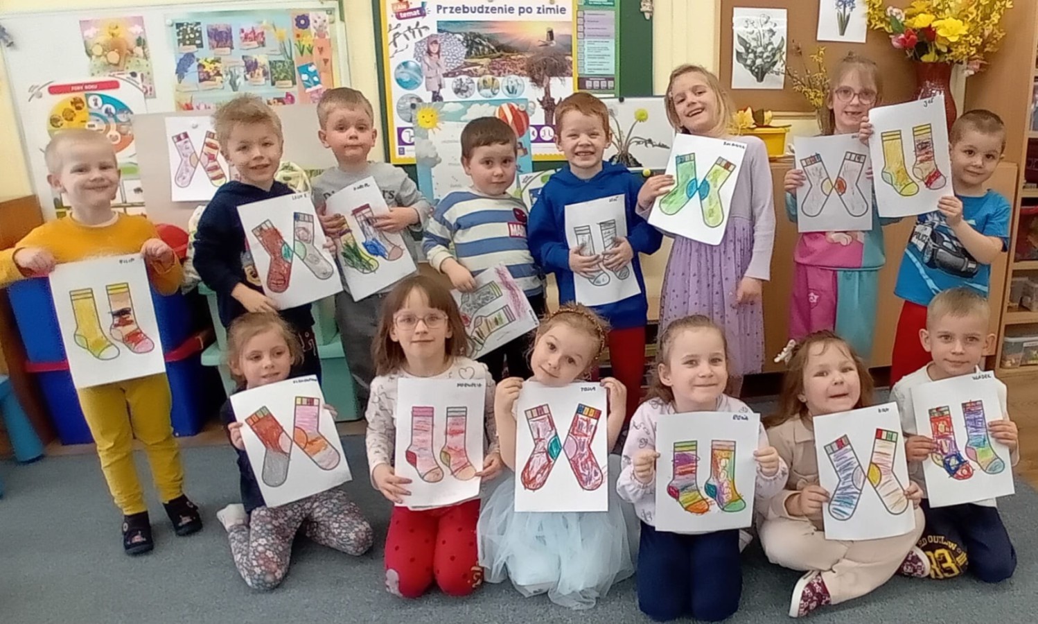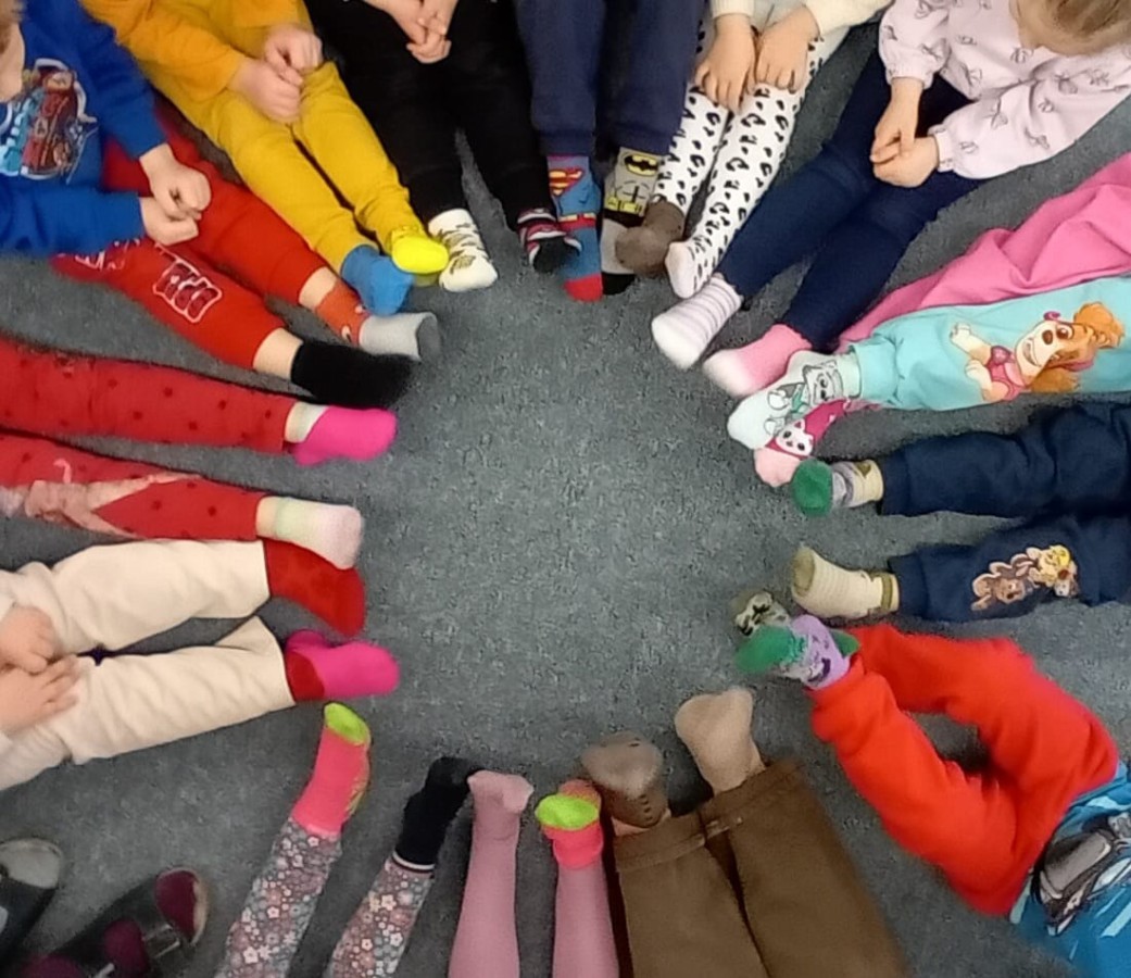 Każdy z nas jest inny, a wzajemna akceptacja i szacunek są bardzo ważne. W tym dniu przedszkolaki brały udział w ciekawych zabawach integracyjnych, skarpetkowych zabawach rozwijających spostrzegawczość i kreatywność. Dzieci dobierały skarpetki w pary, wieszały je na sznurkach za pomocą klamerek, ćwiczyły małą motorykę i koordynację wzrokowo-ruchową. Zajęcia były okazją by pokazać, że różnorodność jest piękna.