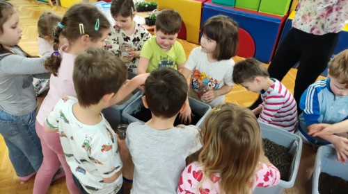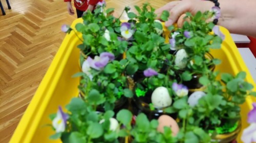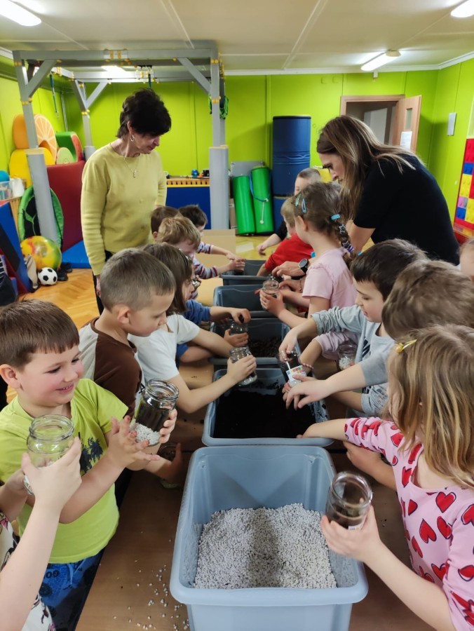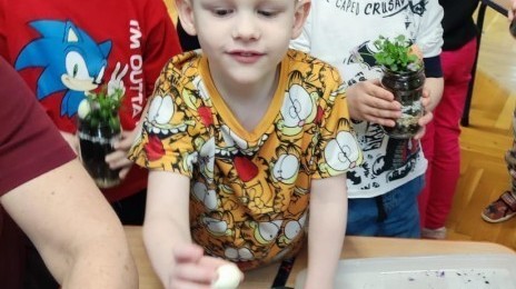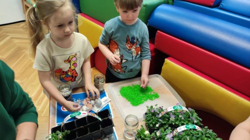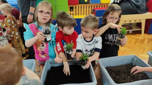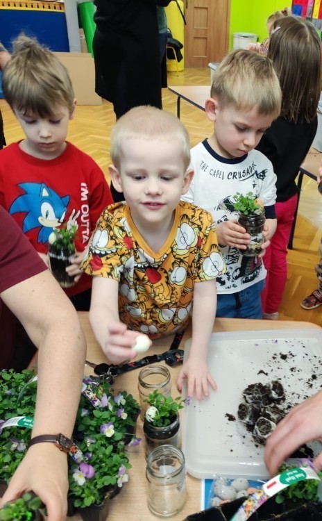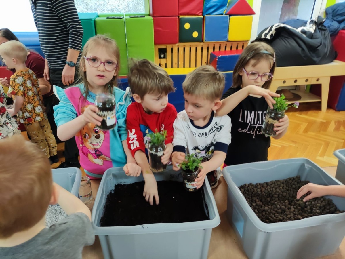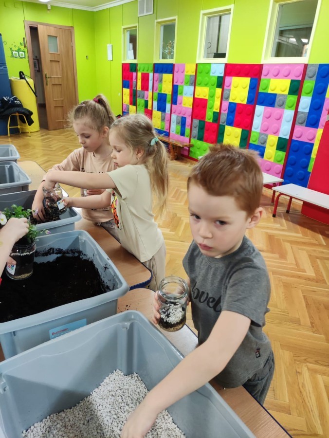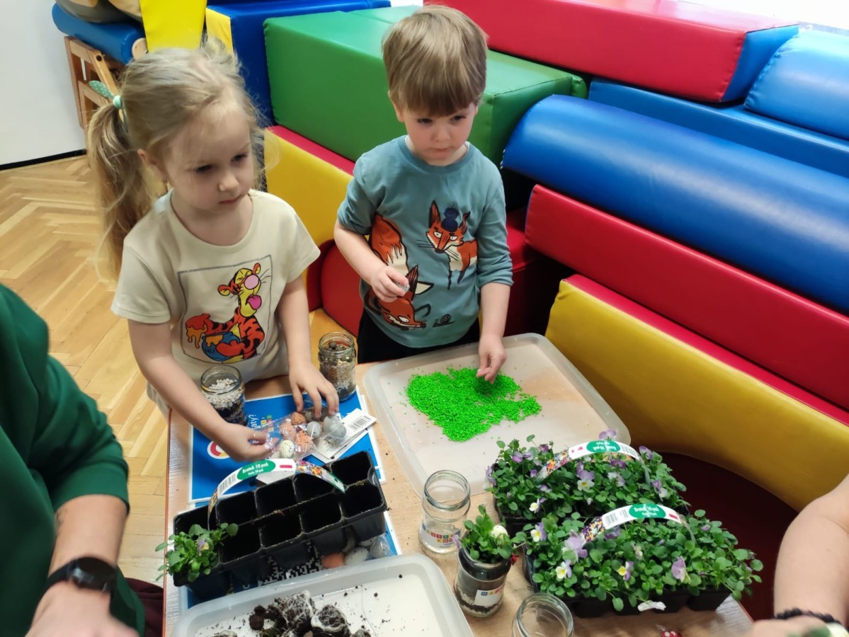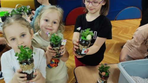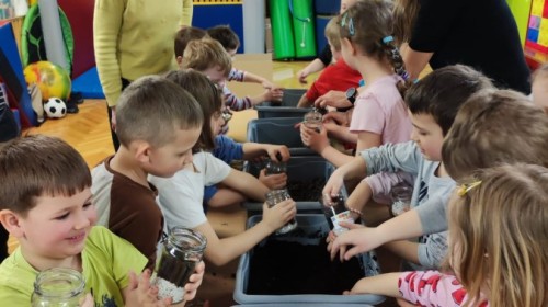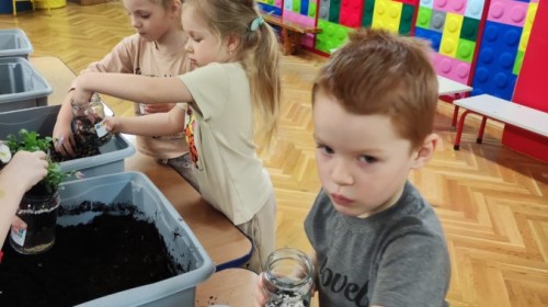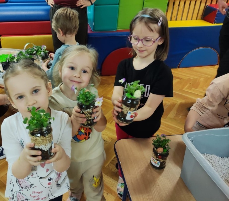 Dzisiaj naszym przedszkolu odbyły się warsztaty kreatywne Castorama Majsterkowo - „Las w słoiku”, podczas których dzieci z Grupy II i Grupy III - sadziły kwiaty i tworzyły swoje małe wiosenne ogrody w słoikach. Podczas zajęć przedszkolaki uczyły się, jak sadzić rośliny i jak o nie dbać. Była to wspaniała okazja do zabawy, rozwijania kreatywności oraz poznawania świata przyrody. Każde dziecko z radością przygotowało swój własny „wiosenny ogródeczek w słoiku”.