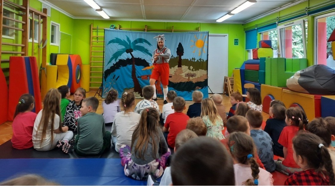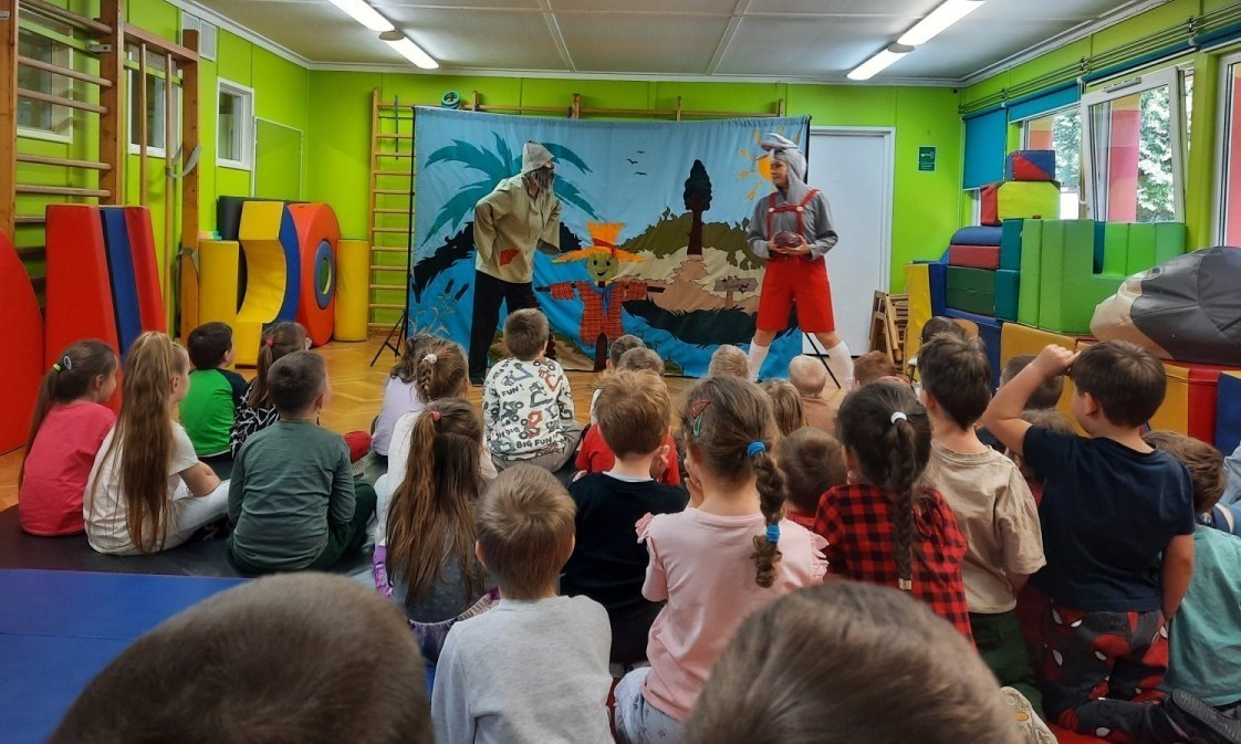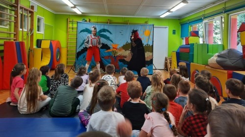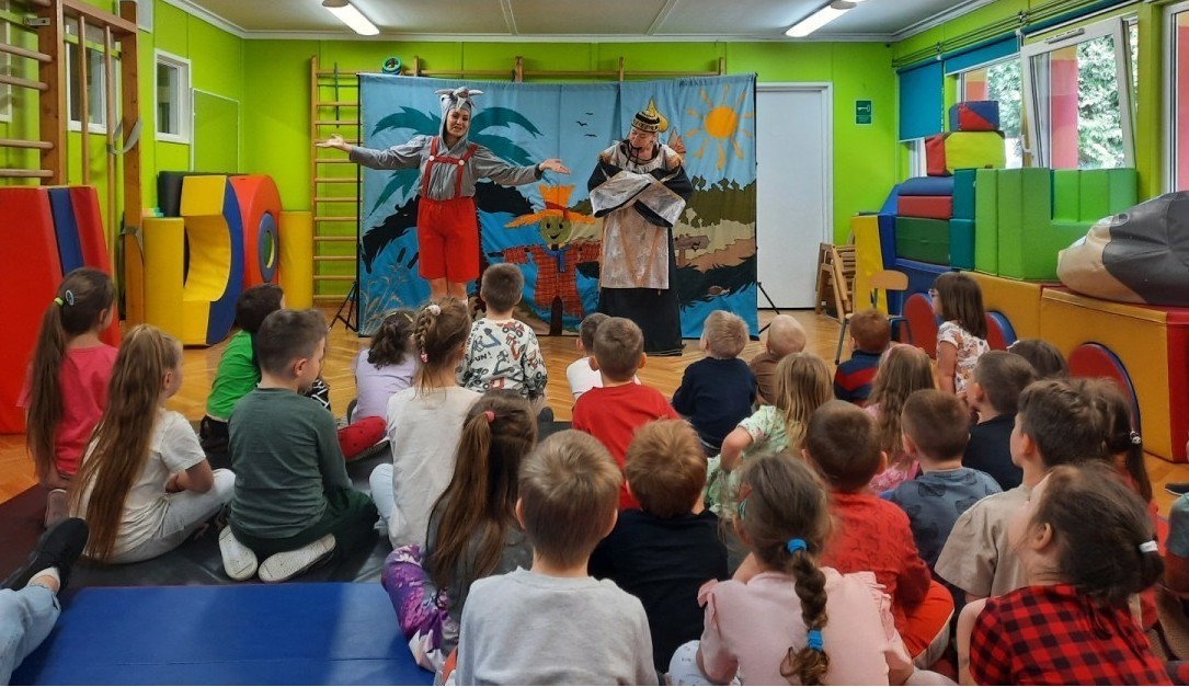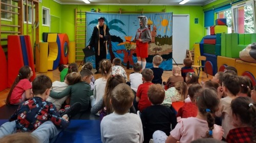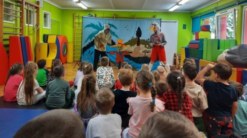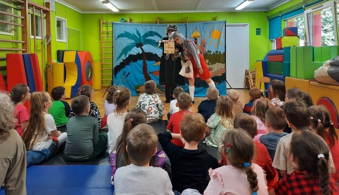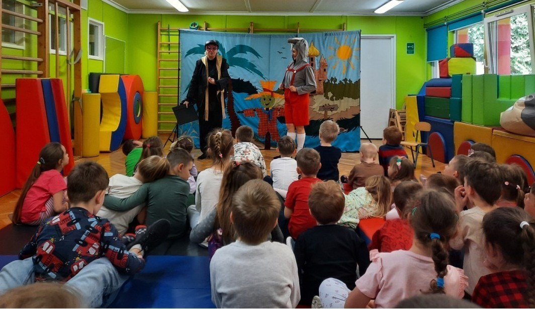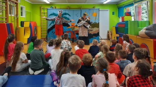 Dzieci z naszego przedszkola miały okazję obejrzeć teatrzyk pt. „Nowe przygody Koziołka Matołka” w wykonaniu aktorów z krakowskiego Teatru - Skrzat. Barwne przedstawienie, pełne humoru i ciekawych przygód, wzbudziło wśród przedszkolaków wiele radości i zainteresowania. Dzieci z uwagą śledziły losy bohatera, aktywnie reagując na wydarzenia na scenie. Było to wspaniałe spotkanie ze sztuką, które dostarczyło wielu pozytywnych emocji.