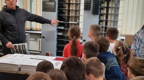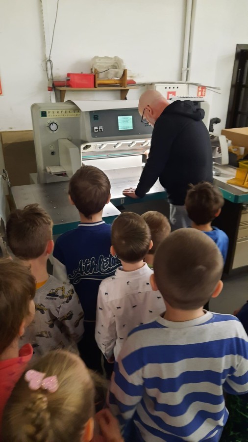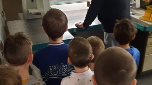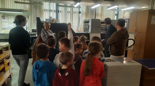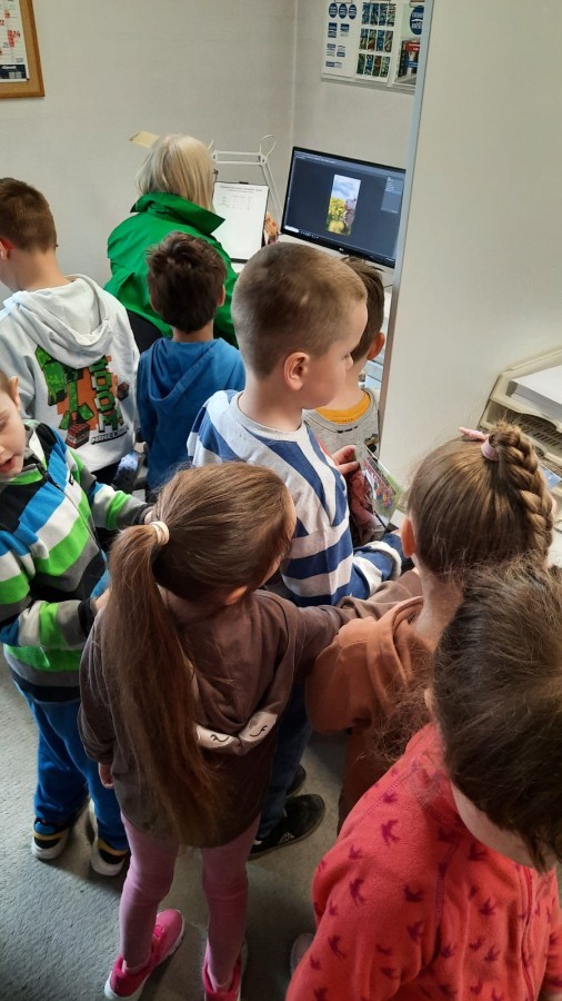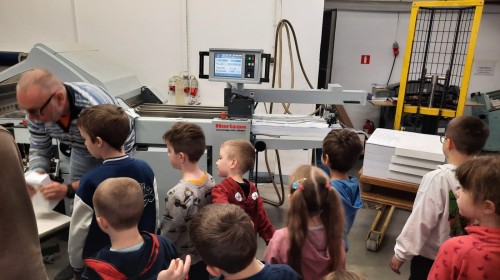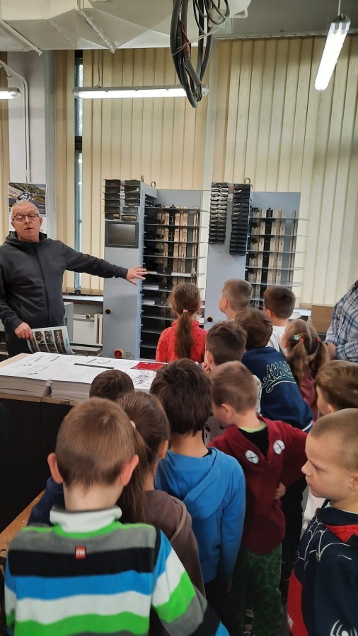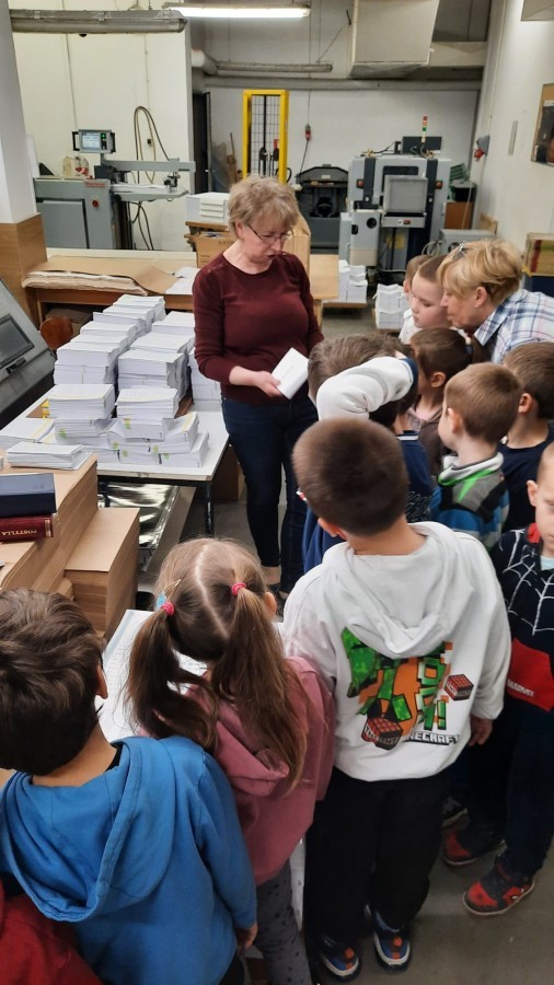 W dniu 17 kwietnia grupa IV wybrała się na wycieczkę do drukarni Augustana w Bielsku-Białej. Była to niezwykle ciekawa i pouczająca wizyta, podczas której dzieci miały okazję poznać cały proces powstawania książki – od zwykłej kartki papieru aż po gotowy egzemplarz.