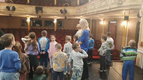10 marca dzieci z Grupy IV wybrały się na wyjątkową wycieczkę do Teatru Polskiego w Bielsku-Białej. Podczas wizyty miały okazję zobaczyć teatr „od kuchni” i dowiedzieć się, jak wygląda praca osób, które tworzą spektakl.