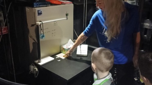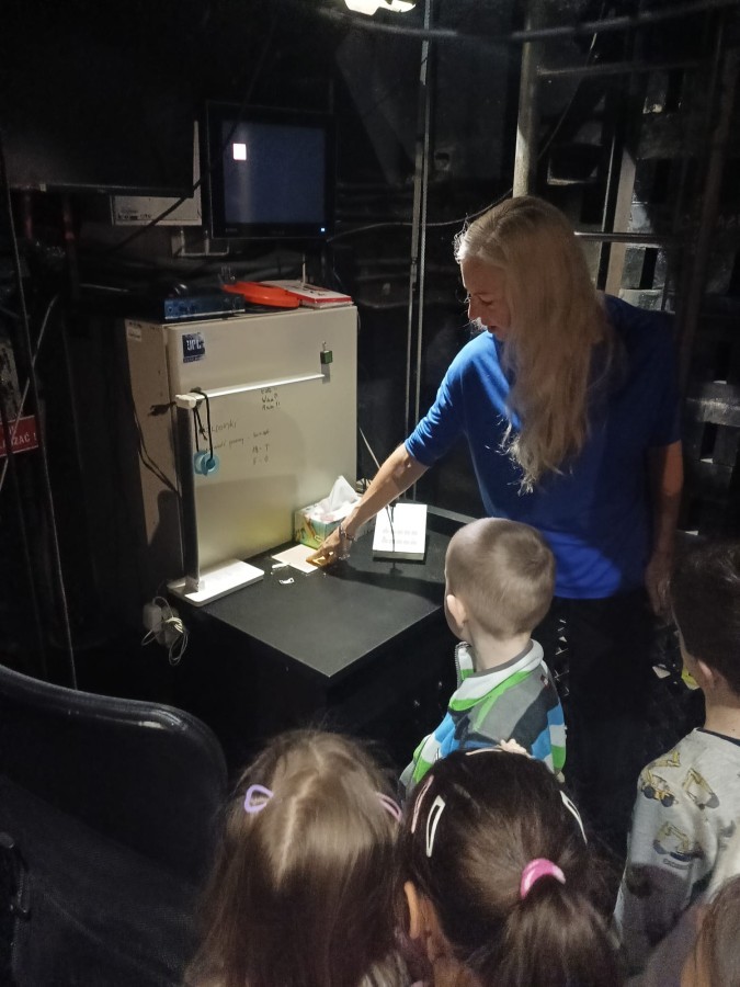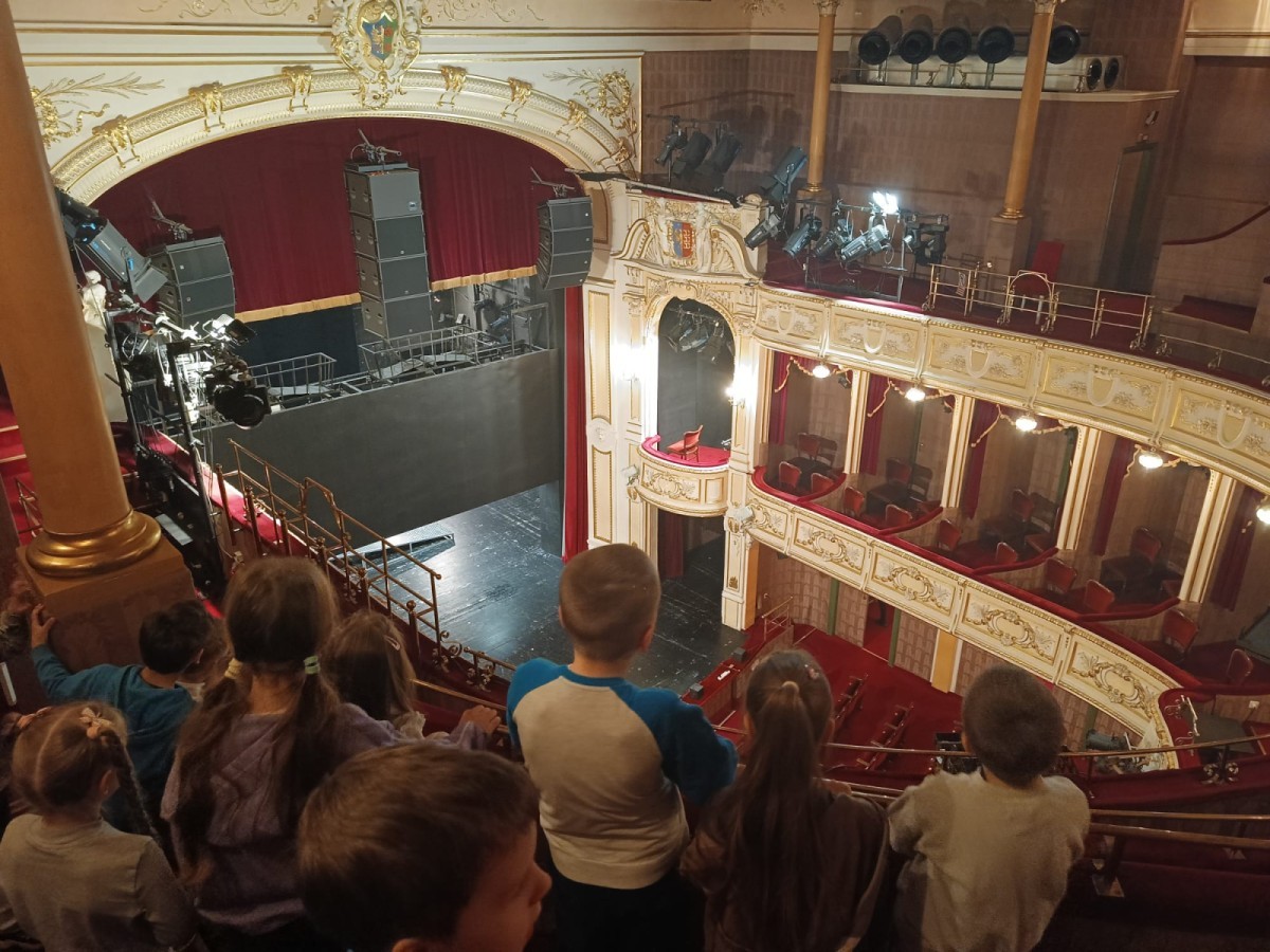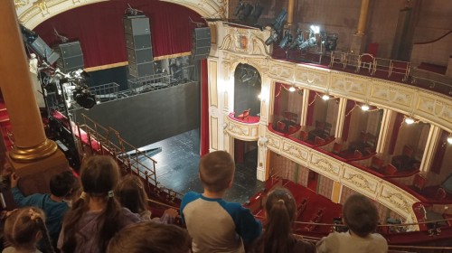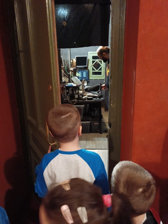 Dzieci zwiedziły różne miejsca na co dzień niedostępne dla widzów. Zobaczyły między innymi, gdzie podczas przedstawienia siedzi sufler, inspicjent oraz dźwiękowcy odpowiedzialni za oprawę muzyczną i efekty dźwiękowe.