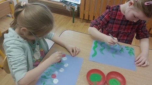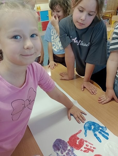 z kolorami – tworzenie nowych barw, stworzenie szybkiego obrazu, projekt artystyczny „Collage”, a także namalowanie pięknych wiosennych kwiatów. Każde z tych działań przyczyniło się do rozwijania u dzieci poczucia estetyki, wrażliwości na piękno, rozwijania wyobraźni oraz używania niebanalnych środków artystycznych.