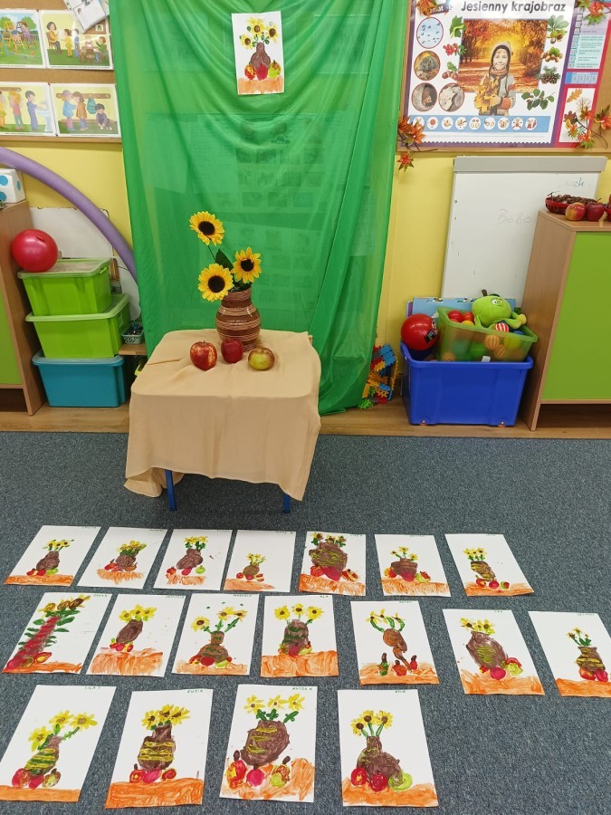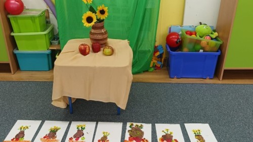 Innym razem dzieci zafascynowane dziełami Paula Cézanne’a wzięły udział w warsztatach edukacyjnych pt. „Martwa natura”.