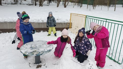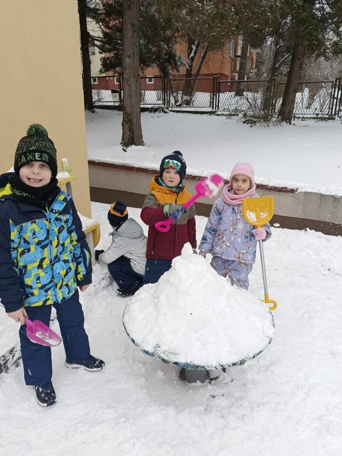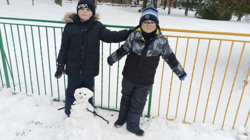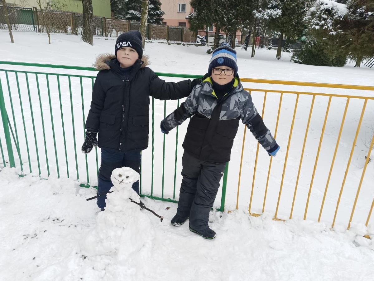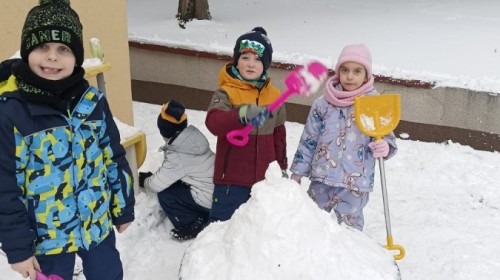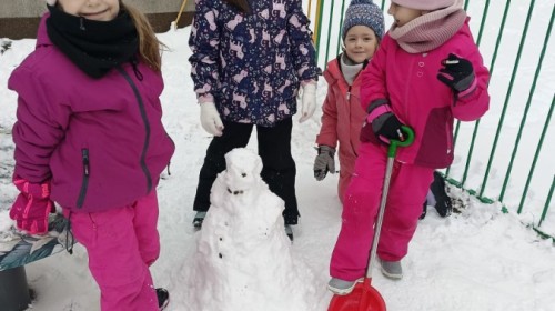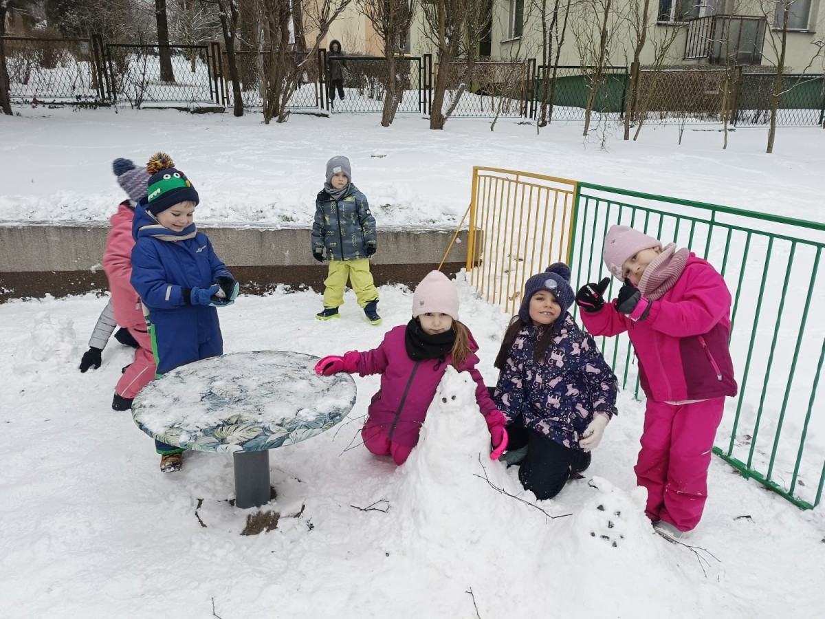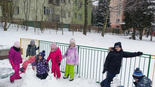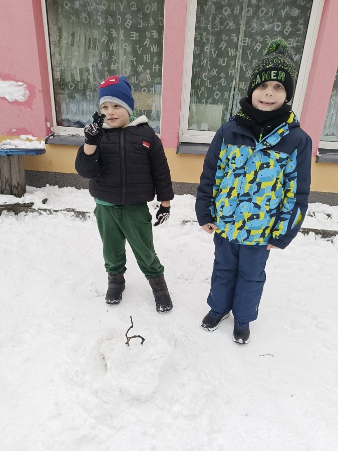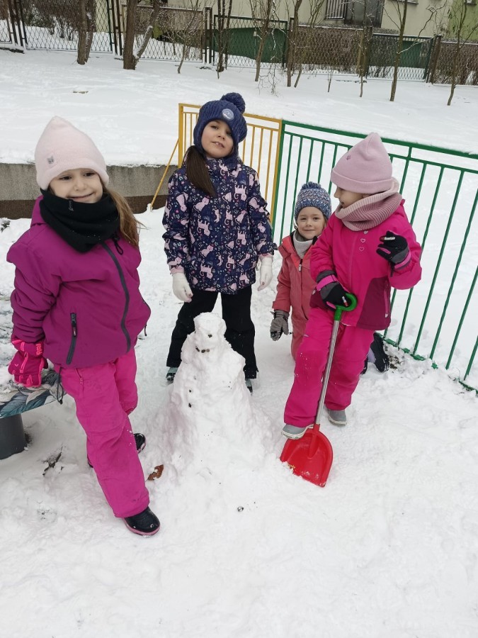 Zima to doskonały czas na aktywność na świeżym powietrzu i radosne zabawy na śniegu. Dzieci z Grupy IV korzystając z zimowej aury wesoło spędzały czas na wspólnych zabawach lepiąc bałwanki oraz rzucając śnieżkami do celu. Nie zabrakło również spacerów po zaśnieżonym terenie oraz rozmów o bezpieczeństwie czy też zmianach zachodzących w przyrodzie. Czas ten sprzyjał zarówno rozwijaniu sprawności fizycznej jak i integracji grupowej a radość płynąca z zabaw i uśmiechy na twarzach dzieci świadczyły o tym jak wspaniale spędziły ten czas.